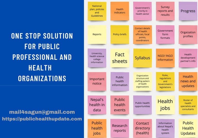 Provides the latest updated information regarding Nepal's health systems, national plan, policies, guidelines, and health facts.
